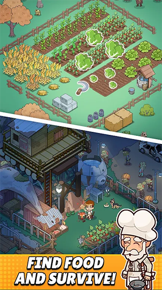 小小幸存者Mini Survival是一款僵尸末日生存模拟游戏,成为末日下的幸存者之一,在末日下建造经营你的餐厅。探索城镇外未知的地方,搜寻有用的物资和材料。为其它幸存者提供美味食物,或是选择制作武器来挑战强力boss。