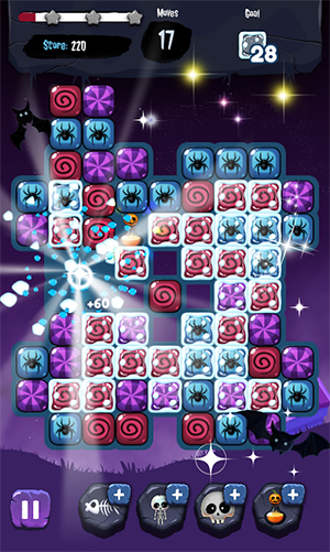 一款令人上瘾的万圣节主题益智三消游戏,包含丰富的万圣节元素和不同级别的关卡,喜欢三消游戏的玩家快快下载吧!