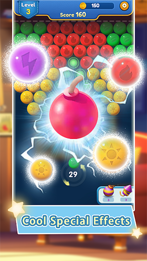 一款简单且令人上瘾的泡泡龙射击游戏,滑动发射泡泡,匹配并组合相同颜色泡泡来完成消除,快快下载体验吧!