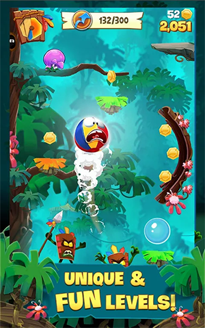 傻瓜蹦蹦乐Airheads是一款有趣的动作跳跃街机游戏,成为蹦蹦乐高手,使用提升道具,尽情加速、跳到最高。蹦蹦乐们的飞机坠毁了,愤怒提基俘虏了他们,帮助小球们穿越丛林,使用平台和强劲的能力来挑战100个关卡,逃离丛林并解救所有伙伴们。