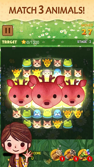 一款轻松好玩的动物主题益智三消游戏,滑动来切换不同的动物,组合成3个或以上相同动物即可实现消除