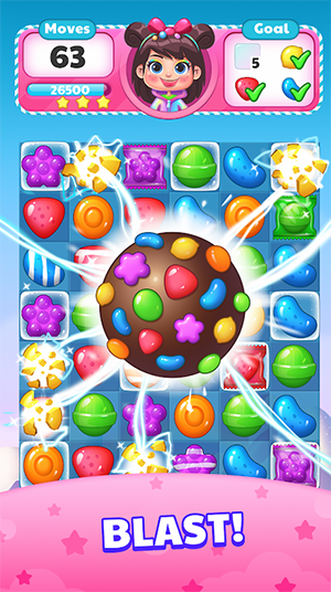 通过按顺序匹配 3 个或更多糖果来制定行动策略,并使用棒棒糖槌通过超粘性挑战