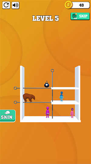 按正确的顺序拉动销钉以击败坏人和怪物,营救女孩的宠物并收集金钱