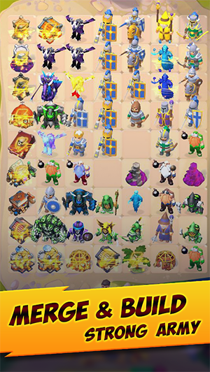 合并军团Merge Legions是一款中世纪风格的奇幻冒险游戏,结合战斗和合并元素,为你带来全新的游戏体验。成为合并大师,保卫你的村庄,集结你的军队,合并来创造一支由不同种族组成的强大军队,升级盔甲、武器、服装、药水来迎接更多挑战。