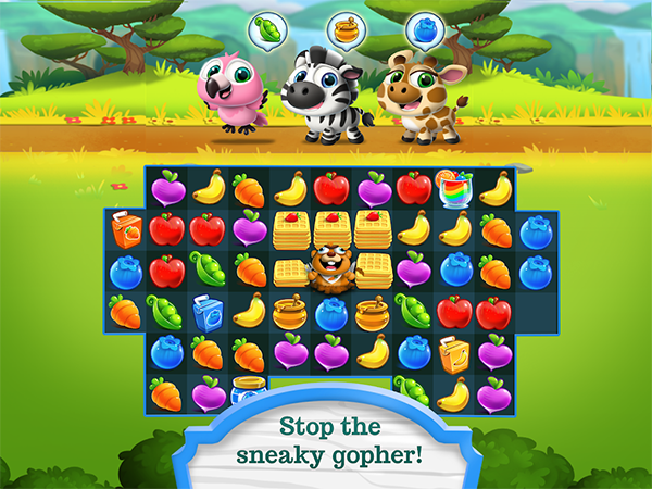 最有魅力的益智游戏,完成800 多个三消游戏迷题,滑动匹配食物并收集活泼可爱的萌宠