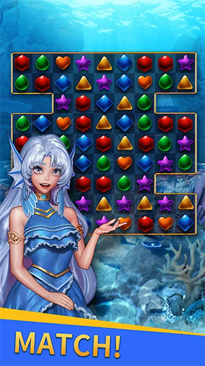 珠宝美人鱼Jewel Mermaid是一款珠宝主题益智三消游戏,进入神秘的海洋世界,携手美人鱼伊芙琳海洋世界中享受三消游戏的乐趣。玩法轻松简单,玩家通过连接匹配三个或更多珠宝来完成挑战,各种不同类型的珠宝等你消除。