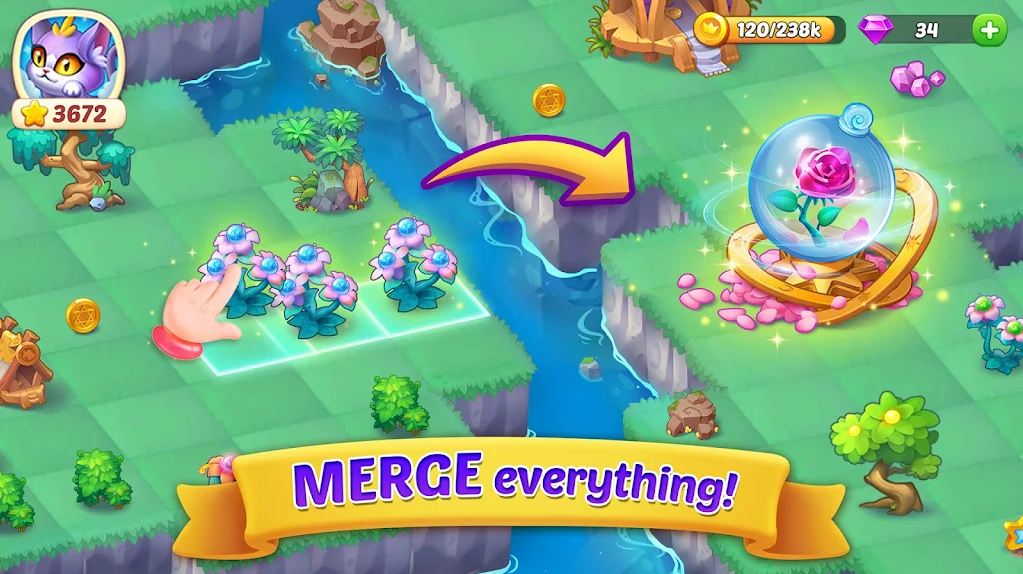 解锁各种花园物品,将它们合并并升级为更高级的物品。