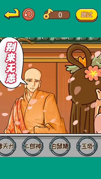 戏说西游传是一款魔性搞怪玩梗类游戏,你能够在游戏中不断开始尝试,轻松有趣的解谜玩法,通过解开各种搞笑的玩梗谜题,你能够轻松通过关卡,收获趣味的体验,快来戏说西游传中尝试。