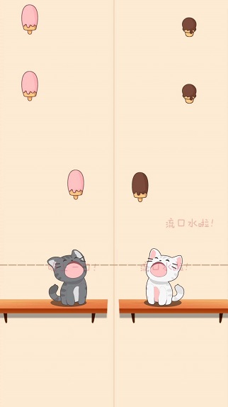通过简单的操作移动小猫,用嘴接住掉落的食物。