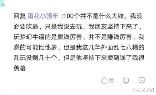 都是玩梦幻玩的,兜里没有1分钱,却感觉100个W是小钱