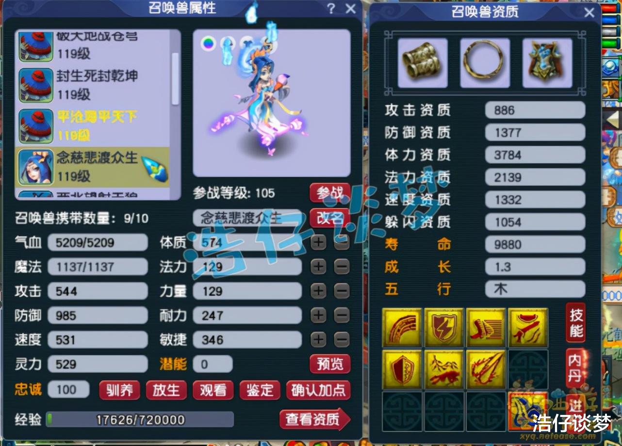 109天宫无符面板属性,打符之后防御能达到2000以上,气血上万很轻松,配合神器速度能达到1100以上,属性还是很不错的。
