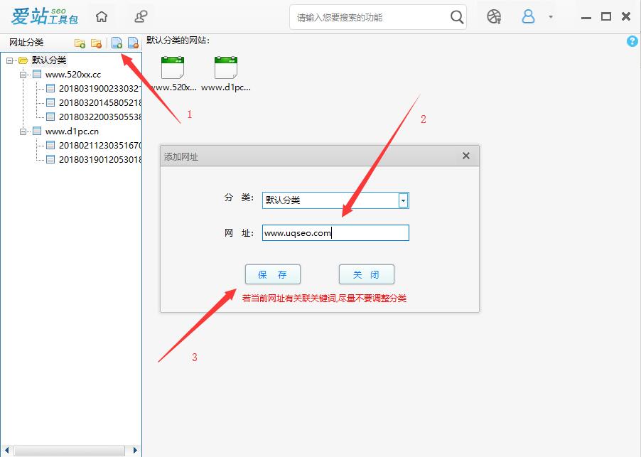 2、 进入之后点击添加网站,输入网站域名uqseo 点击保存即可