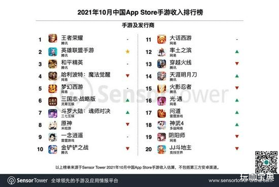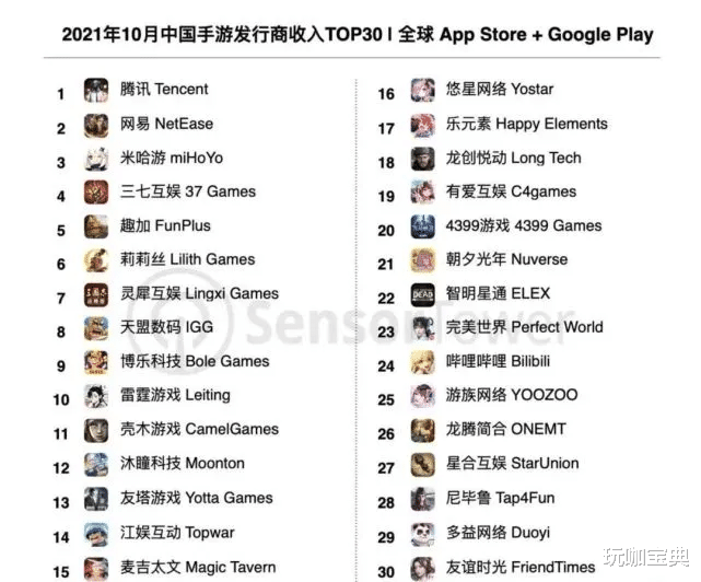 近日,移动应用分析平台Sensor Tower发布了2021年10月中国手游发行商在全球App Store和Google Play 的收入排名。