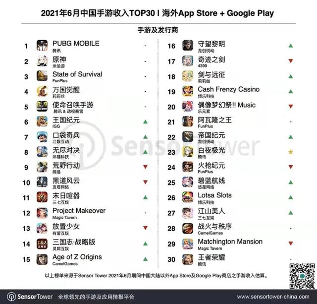 今年6月份,《Alchemy Stars》(白夜极光)陆续登陆日韩、欧美、东南亚等多个海外市场,当月营收超过1700万美元,位于出海手游排行榜第23名(Sensor Tower统计数据)。