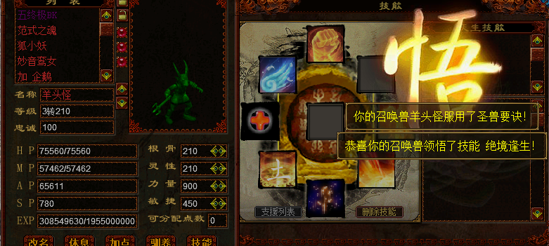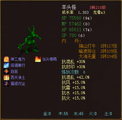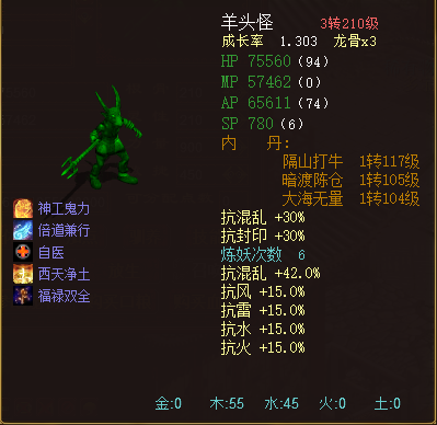 吃了三本万兽要诀给出了两个高级技能克土,福禄双全,小技能自医