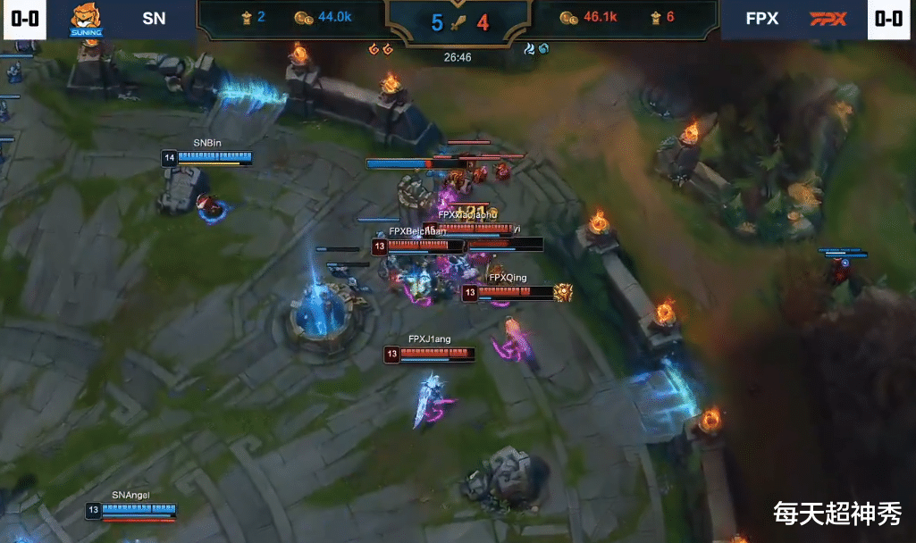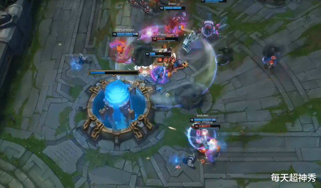 原本以为Bin凯南能率队持续扩大经济差,没曾想FPX依靠视野优势偷掉大龙,两队回到同一起跑线。手握大龙Buff,FPX全员进攻SN高地,顺利推掉中下两路高地水晶,SN无力抵挡,距离小组赛首胜,FPX只差临门一脚。