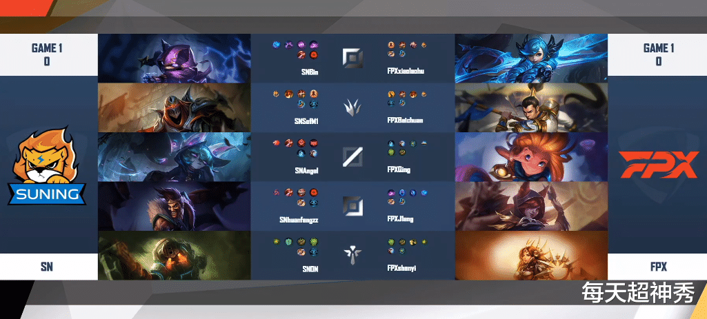 强强对决一触即发,进入BP阶段,SN阿Bin抢下凯南搭配SofM劫,与之交锋的是FPX上野Xiaolaohu格温+北川赵信,国产中单Angel锁下新英雄薇古丝对阵FPX佐伊,双人路同样“火药味”拉满,久别赛场的Huanfeng选出招牌英雄德莱文配合On泰坦,Jiang、Shenyi用霞+蕾欧娜应对。