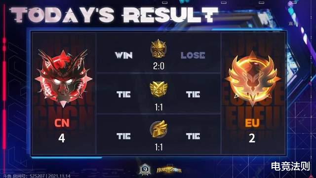 CN赛区和EU赛区的比赛中,胜负的关键则在于酒馆战棋的对决。CN赛区一改之前的激进风格,转而求稳吃烂分,以更高的排名积分取得了最终的胜利。标准模式和佣兵战纪的对决中则保持了一如既往的稳定发挥,没有给EU赛区扳回比分的机会。