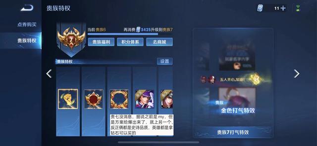 众所周知,王者荣耀贵族系统已经由来很久了,而身为贵族的玩家,也能够在不同的等级领取不同的奖励。其中,有狄仁杰、项羽和赵云的贵族皮肤,另外V8专属的虞姬启明星使等等。那么问题来了,之前阿拿爆料的贵族V7限定皮肤,是给到了芈月。但是,被爆料出来之后,天美重新将资格给到了别的英雄。同样的,贵族V7限定并非芈月,而是一个钻石英雄。在小编看来,甄姬还是有比较大的可能哦。