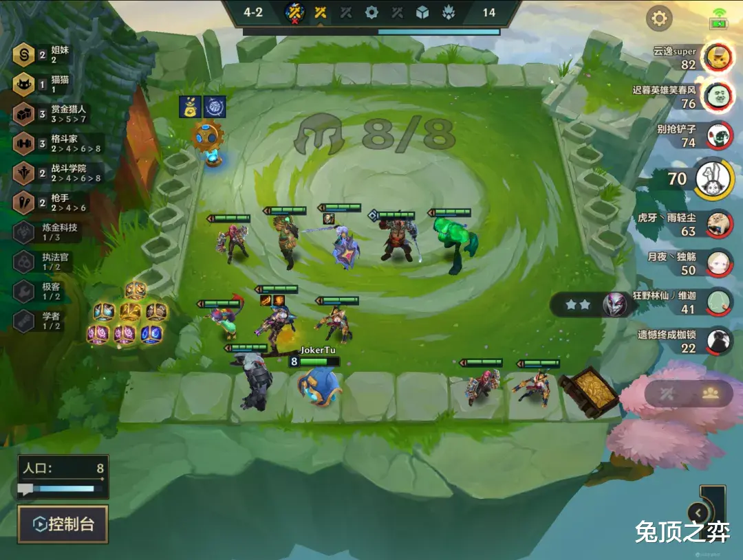 在测试中一共玩了6局斗枪,均吃分,可以说只要前期运营好且8级抽卡幸运一点就一定是能吃分的,后期吃鸡还是要看能否上9人口以及场上质量,因为我们后期打的基本都是莎弥拉以及大嘴这种赌狗阵容,基本场面全2才能和他们五五开,但是斗枪的优势在于后期有极大的容错,前提是前期打出连胜,有点和上个赛季的复生游侠运营类似,不过我们养的是5费,总而言之后期吃鸡还是要看谁更胡一些,目前还未观察出克制斗枪的阵容。