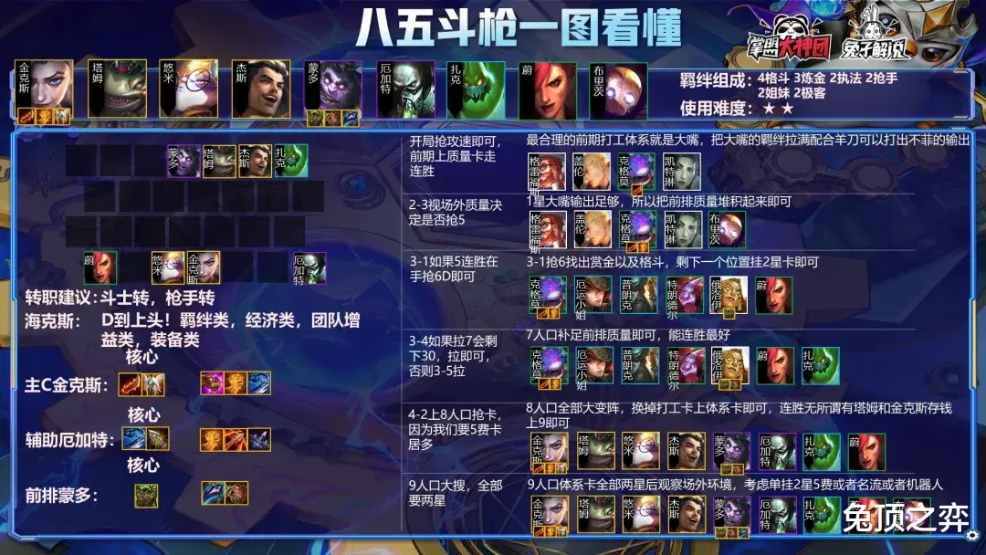 大家私信回复1就可以随时拿到最新4K版本的一图上钻了,阵容,装备组合,手法,羁绊一应俱全,轻松上钻!