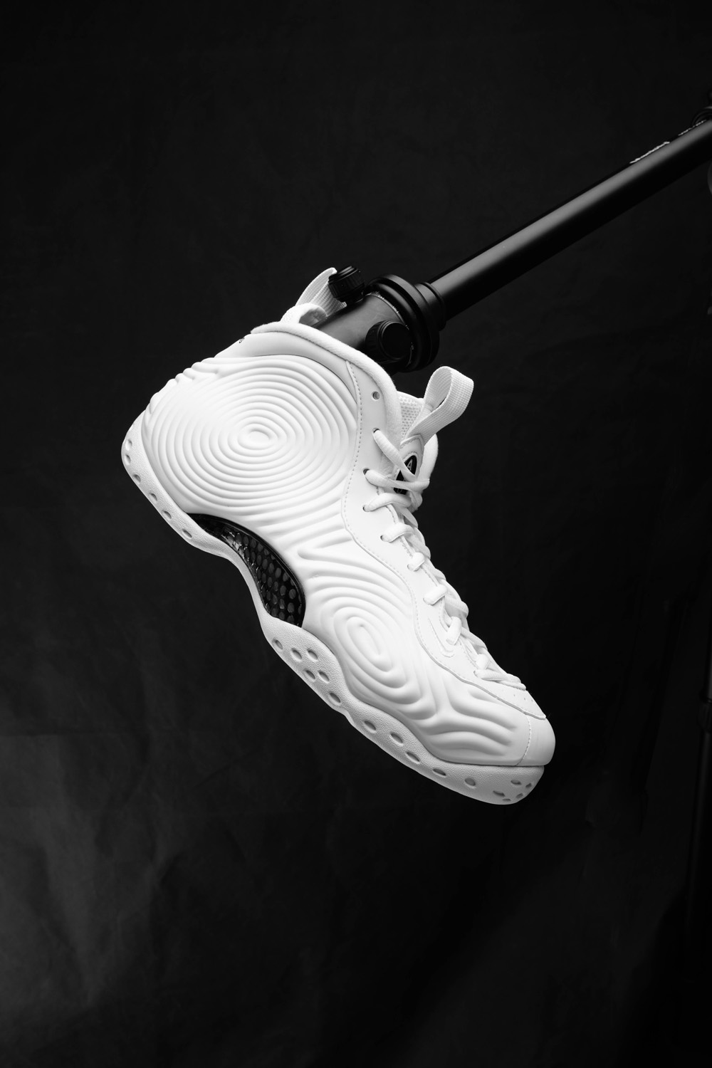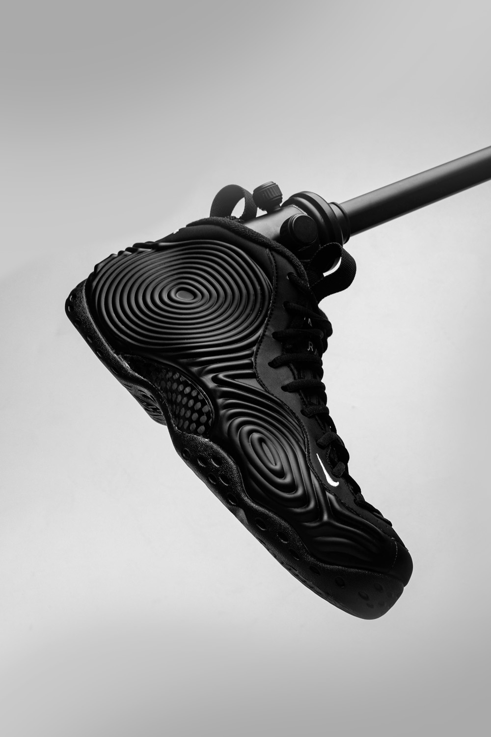 近期另一个颠覆性设计,当属 CDG 联名的蚊香喷。史上首次对 Air Foamposite One 的鞋身纹路进行了修改,绝对与众不同。