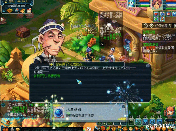 为了能让第5孔顺利的开成功,玩家先找到了神机道长进行祈福!