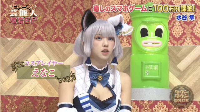 当然以えなこ的收入来说,500万日元或许并不是太庞大的数字,不过的确也是相当可观的,节目的主持人们也有些讶异(或许是主持人并没有玩手游课金的习惯)。