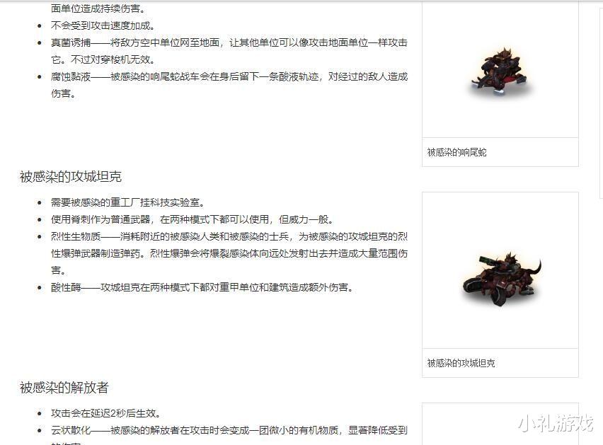 泼粪车就不用说了,而另外一个便是坦克虫的原型,被感染的攻城坦克,这家伙可以用虫族的那个叉子,还可以有攻城坦克的炮弹能力,而且最关键的是他还可以抓那个感染大军里面的感染体来当炸弹用,他还能对重型作战单位展开攻击,可以说,这个单位算得上是一种作战单位里面,强势到不行的存在。