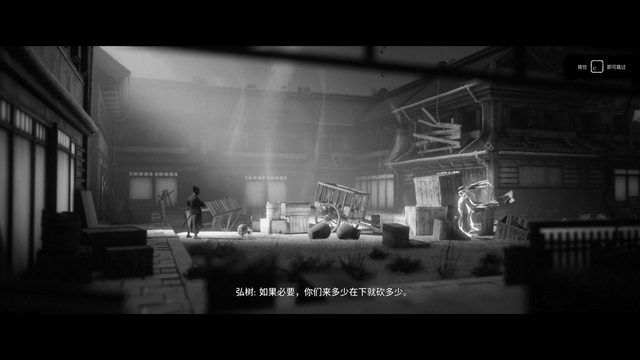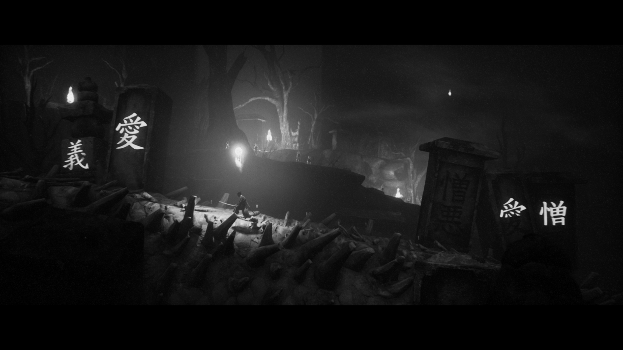 《黄泉之路》起初的灵感来自黑泽明、小林正树等一系列经典日本电影的影响,当时在虚幻引擎中尝试以黑白两色呈现游戏画面,包括拍摄角度、画面,甚至是台词的表达方式。和《十三刺客》《七武士》《切腹》等一系列电影一样,《黄泉之路》的主角弘树也在探索心中的“道”,什么是“道”?生存与“道”面临矛盾时又该如何选择?