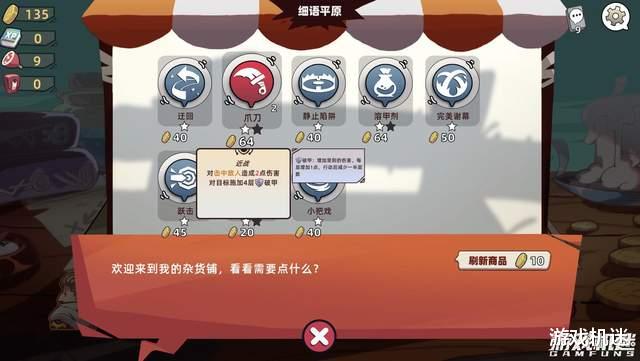 玩家在地图上可以见到卡牌商店,增删商店,宝箱 ,补给粮食回血的泉水等地点,在探索时一定要注意的是事物血量,毕竟总归是要到达终点的。第一不能频繁触发战斗而消耗掉太多血量,第二呢也要保证拿到足够的金币,金币购买卡牌组合牌组很重要,这一探索收集的过程有效地丰富了游戏体验,也让本作充满了可玩性。