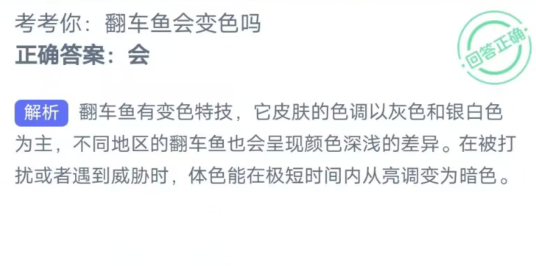 考考你翻车鱼会变色吗,蚂蚁森林神奇海洋科普问答答案是什么,神奇海洋是蚂蚁森林全新推出的海洋公益玩法,可能还有很多小伙伴想知道今天蚂蚁森林神奇海洋问题考考你翻车鱼会变色吗,下面一起来看看神奇海洋翻车鱼答案4.14是什么吧。