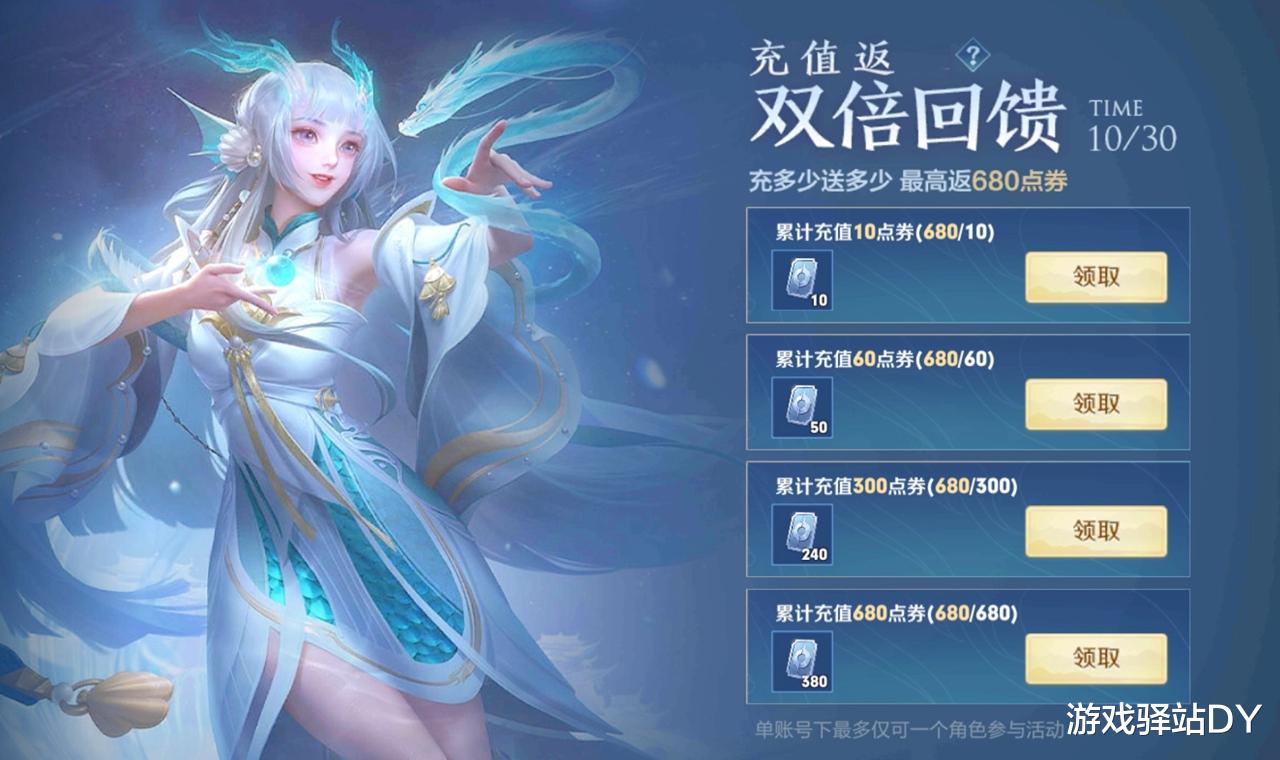 除了蔷薇之心外,还有两大福利不容错过,其一是极为罕见的充值领取双倍点券的福利,该活动能让玩家额外得到最多680点券,该额外获取的并非限时点券,可以长期保留,小编觉得比送额外积分和皮肤碎片要给力。