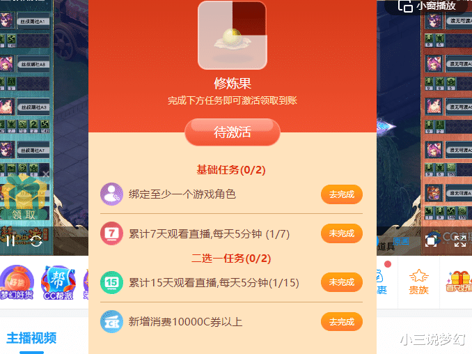 小编感觉现在策划在降低CC中物品的产出,因为现在获得的这些道具想要运到游戏内是需要做任务的,上面的这位玩家获得的修炼果想不花钱运到游戏内需要连续看15天的直播,否则这个修炼果会失效。