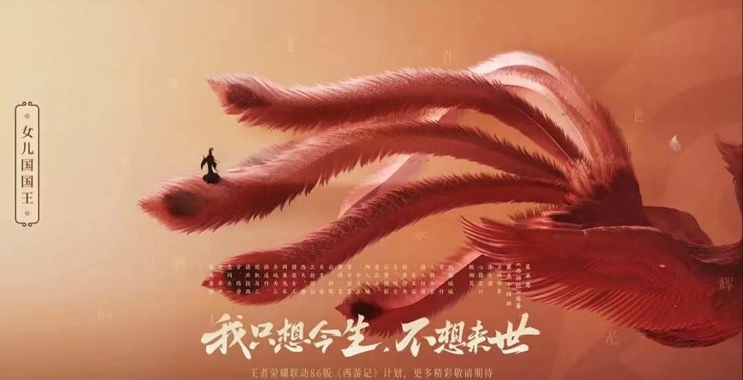第三款公布的皮肤是女儿国国王,这款皮肤也是没有曝光出任何外形设计,不过从台词“我只想今生,不想来世”可以肯定的是女儿国国王,熟悉86版西游记的玩家都知道,女儿国国王也是唯一一位让唐僧动了凡心的人物,定位应该是史诗皮肤,所以很多小伙伴表示888留给女儿国国王,开玩笑的表示:有了女儿国国王皮肤在手再也不同怕唐僧师徒四人了。