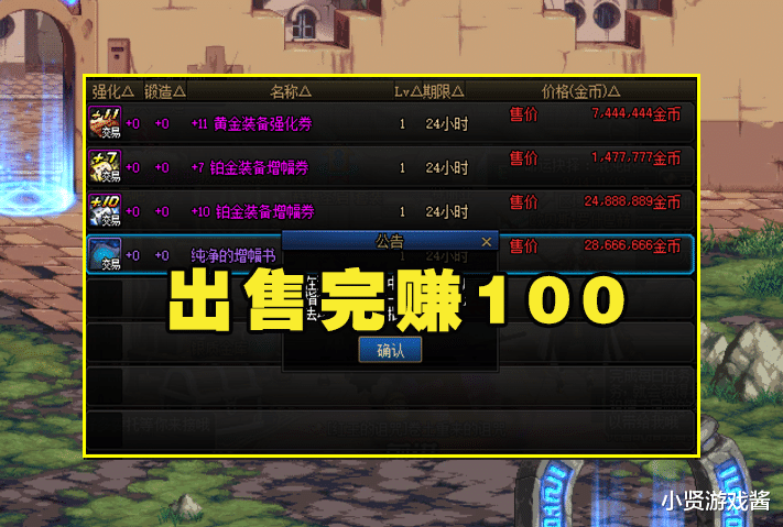 然而,这位玩家在开券子礼盒的时候就没这么好了,分别开到了+11黄金装备强化券、+7铂金装备增幅券、+10铂金装备增幅券,一张+12券都没有,但是所开出的4种可交易的道具,在出售完之后所赚金币也不低,总共有6200W金币,换成RMB也有100块钱了,简直美滋滋,虽然价值没有开到龙珠、+12钻石增幅券高,但是5个龙盒能开出3个券子礼盒,这运气不得不让人羡慕。