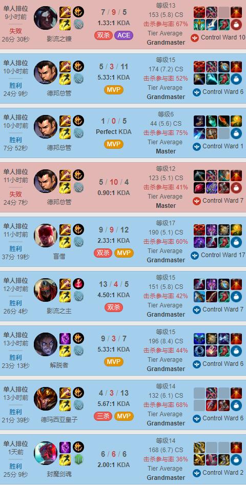 Canyon在Rank中的MVP率是真的高,截取的9场比赛,竟然就有5局MVP,状态确实生猛。