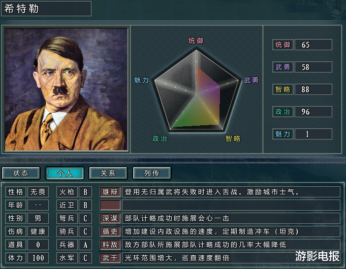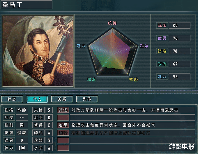 如果从能力值和适性上来看,麦迪逊完全不会是一名可以存在在战场上的武将,因为不论作战三围还是兵种适性,没有一个可以在战场上起到重要作用的。