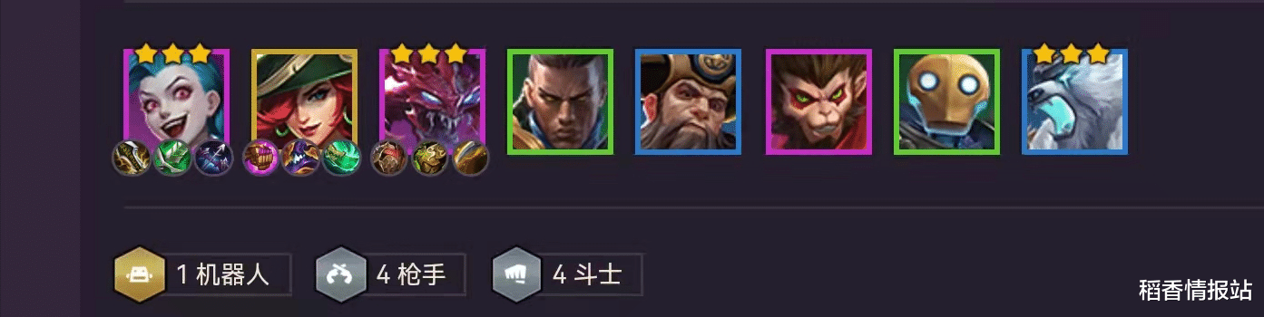 棋子质量方面,金克斯是必须要追3的,大虫子也尽量选择追3,其余棋子不强求,2星强度就够了。