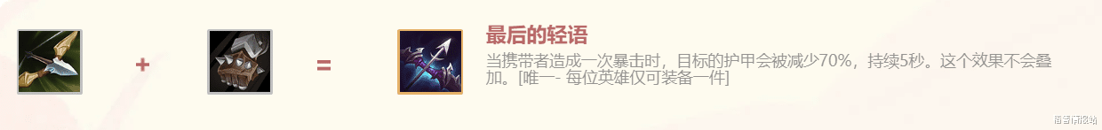 而最后一件装备的选择上,我们一般是要根据场上局势来进行判断,比如在面对斗士或者骑士较多,前排坦度较高的阵容时,我们就可以给到金克斯一件巨人杀手来提高融坦能力,当然除此之外,正义之手是一个极为契合金克斯的选择,不管是基础属性,还是吸血/加攻击的效果,都可以为金克斯提供超级保障。当然,最后的轻语也是件不错的选择。