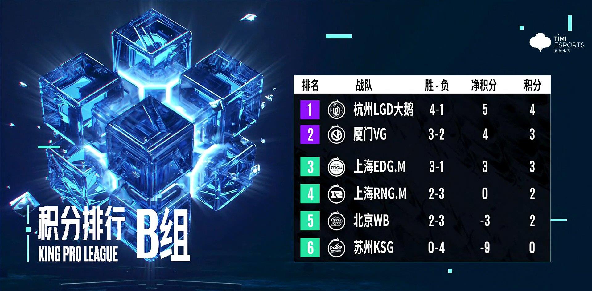 2021年kpl秋季赛第二轮的比赛接近尾声,对于B组来说,基本上也是本赛季的最后的时间了。随着比赛的进行,B组的形势也是逐步的确定,第一个晋级卡位赛的队伍也是正式确定。LGD大鹅在战胜VG之后,直接拿到晋级卡位赛的资格,VG则是要与EDGM进行激烈的争夺,而WB则是还没开始与EDGM打,就已经出局,当然,最后WB也是没打过EDGM,不管怎样都是无缘卡位赛。经过这场比赛之后,整个B组的形势也是逐步明朗,十分的让人期待!