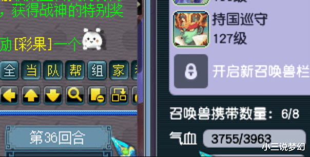 梦幻中是存了很多专门抓持国的队伍的,这些抓持国的队伍的主角色会点猎术修炼吗?上面的这位玩家为了抓一只野生的持国巡守的时候用了36个回合,所以小编感觉那些抓稀有召唤兽的队伍的主角色是必须要点猎术的,这样才能够提成捕捉的效率,捕捉的效率快了,经历的战斗就会多,那个时候碰到的持国巡守就有可能会更多。