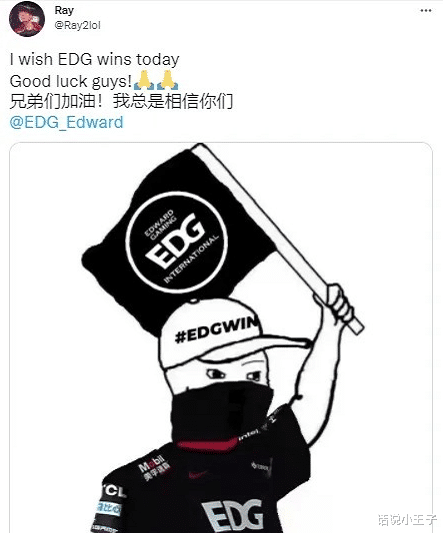 值得注意的是,前EDG上单选手Ray更是发文为EDG加油,他表示EDG加油,我总是相信你们。其实他的这番加油是有点意外,可能很多观众都没有想到,不过他能为EDG加油,也感到挺欣慰的。不过也有一个风险,他很有可能会被很多LCK的网友怒喷,他也是承受了一定的压力。