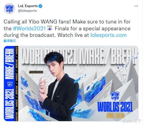 除此之外,官推更是喊话王一博粉丝。官推就表示,呼叫王一博所有粉丝,一定要收看2021年全球总决赛,他将在场间特别环节带来舞台表演。也就是说观众不仅可以看到比赛,还可以看到王一博所带来的表演。